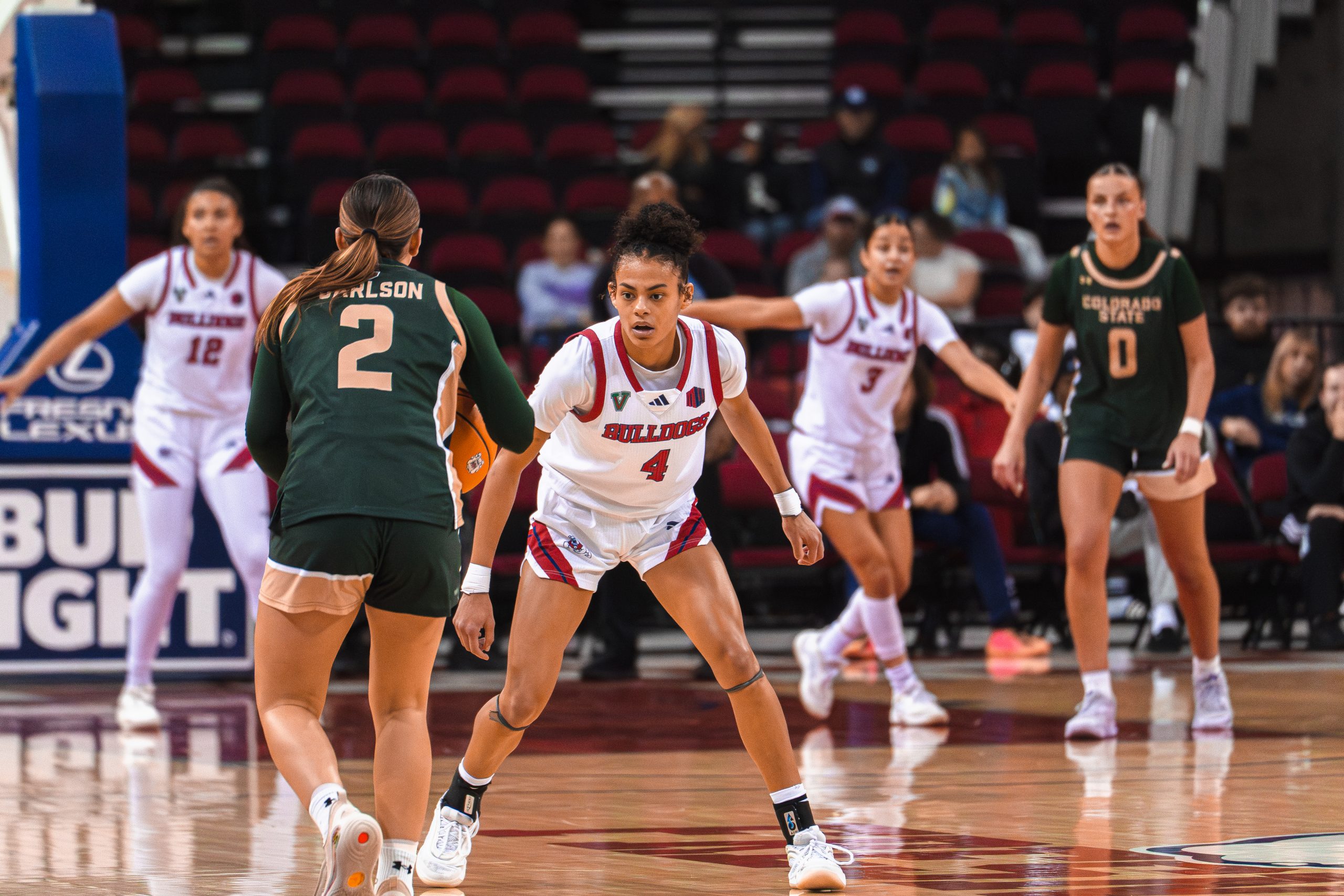 The Bulldogs responded with a 7-3 run, including a three from Douglas Jr. and a fastbreak dunk from center Wilson Jacques. Fresno State managed to slowly close the gap and a three from Zaon Collins cut the deficit to 26-19 heading into halftime.